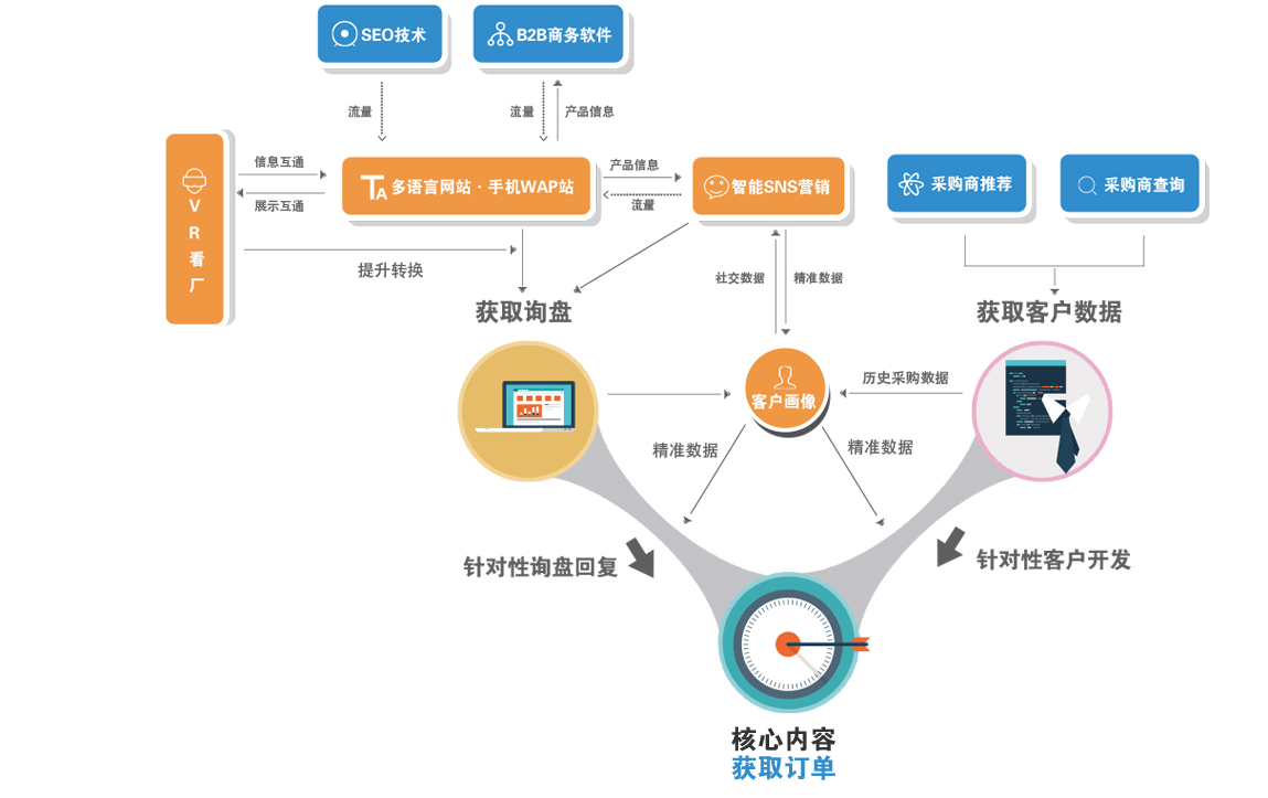 基于全球SNS大数据的一站式社交营销,助力外贸企业智能挖掘客户数据、智能互动,并智能达成转化。包含跨平台多账户管理体系、智能社交营销体系、智能监控体系。